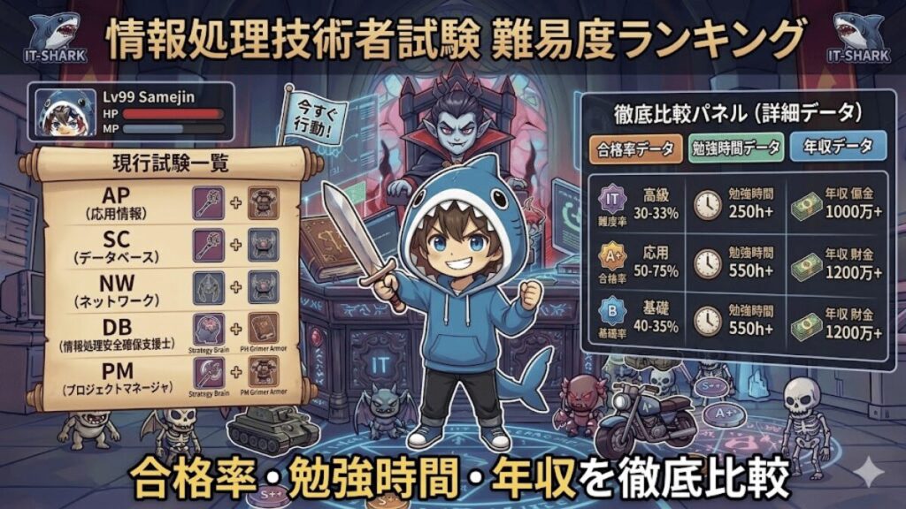 ![情報処理安全確保支援士試験[詳細]_国家試験_IT資格_IPA_情報処理技術者試験_難易度・偏差値・合格率・勉強時間・受験条件・説明](https://it-shark-blog.com/wp-content/uploads/2025/02/情報処理安全確保支援士試験詳細_国家試験_IT資格_IPA_情報処理技術者試験_難易度・偏差値・合格率・勉強時間・受験条件・説明_IT-SHARK-BLOG-1024x538.png)